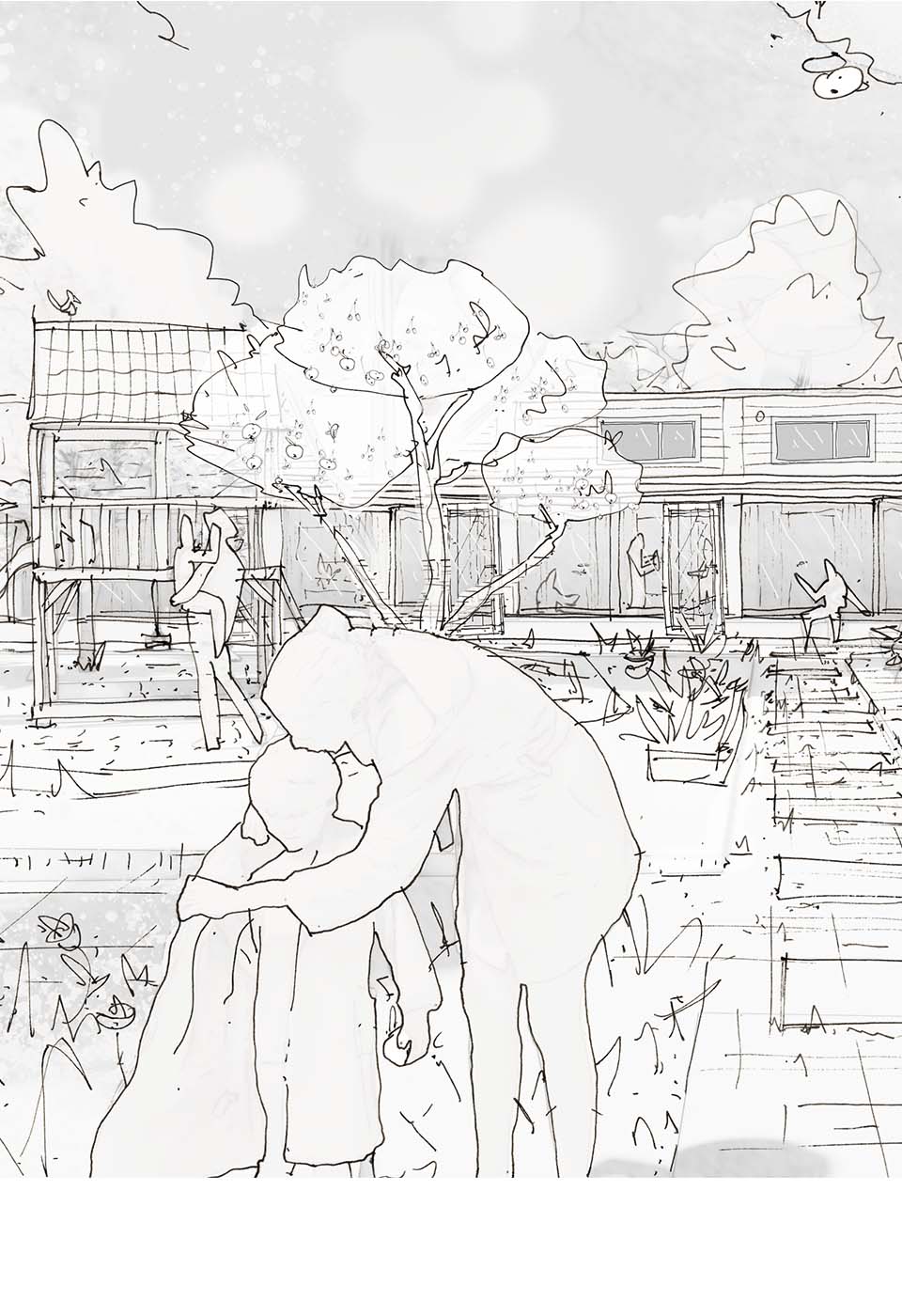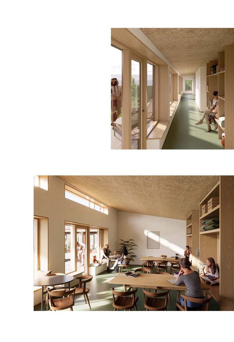 Med et program som dette, må vores vante metode vendes på hovedet, for vi tvinges til at se vores typiske tilgang med nye øjne. Der hvor vi typisk søger at skabe de fysiske rammer for en boligbebyggelse, har vi med den nye krisecenter på Bornholm fokuseret på de uformelle møder i hverdagen. Vi har bestræbt os på at give plads til det gode naboliv. Her vil mødet i trappeopgangen, gården eller ved cykelstativet være omdrejningspunktet for den arkitektur vi ønsker at skabe.