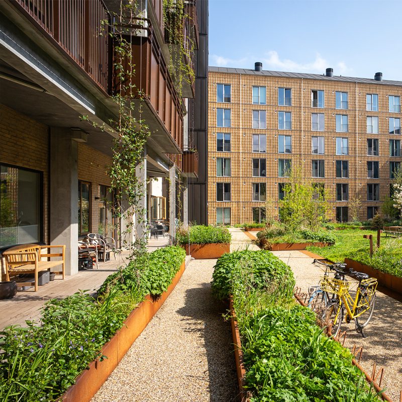 Opført efter Pension Danmarks boligkoncept Bofællesskaber (Virke)